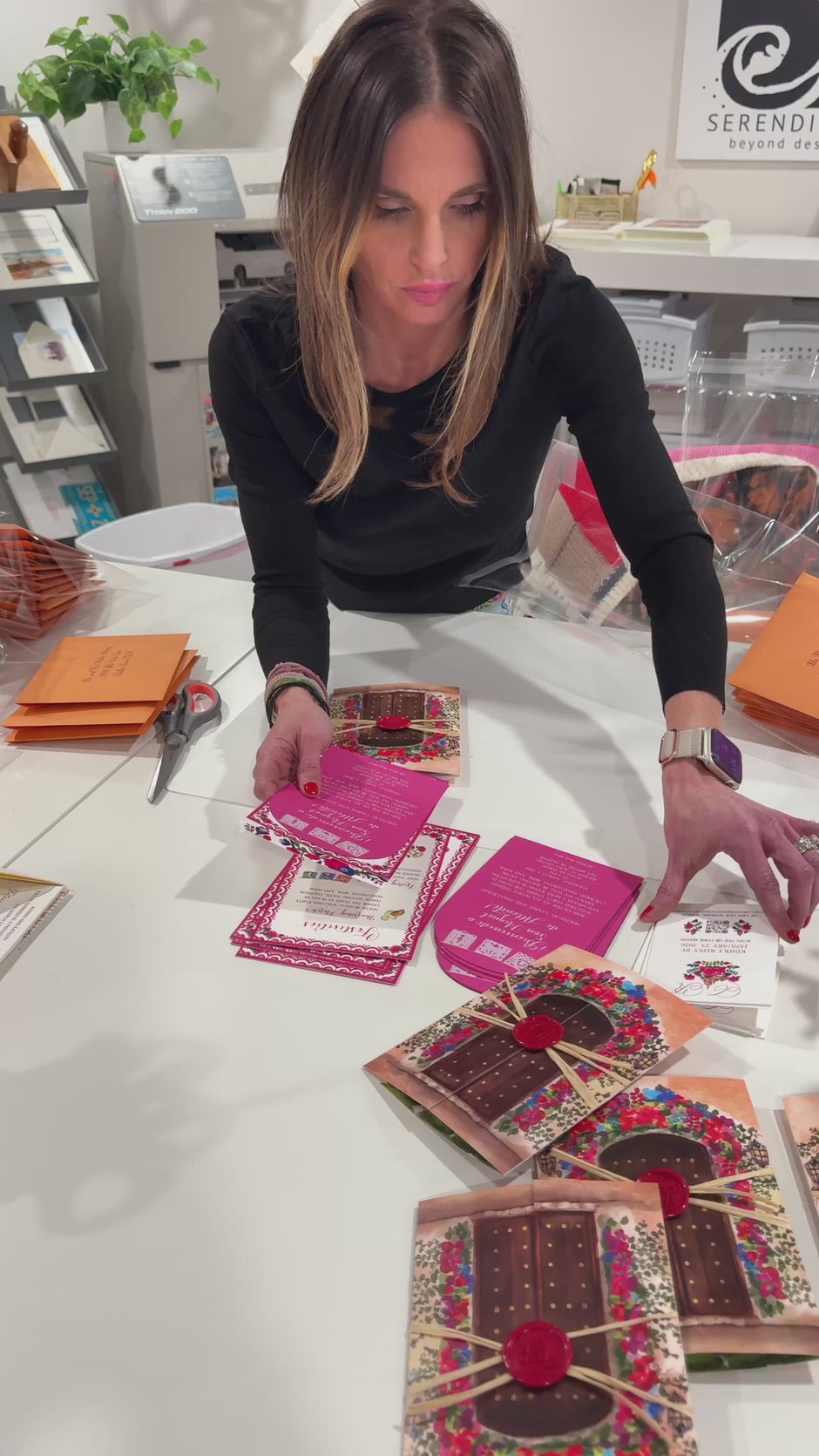 Assembly of your order is done in our lively (and colorful) design studio. All you have to do when you get your invitations is add your postage, seal your envelopes, and mail!